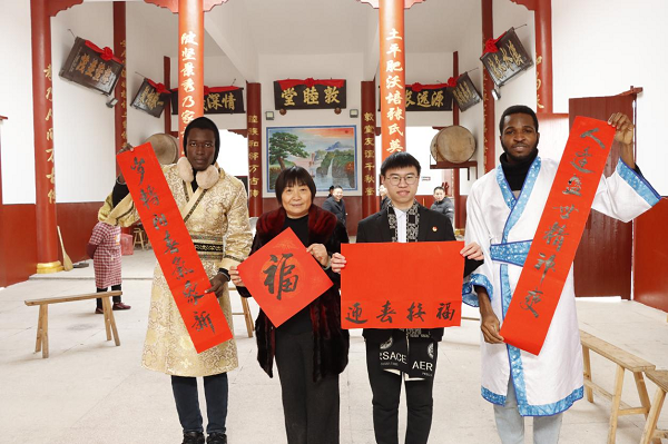 (本网讯 何凯 报道)寒假春节期间,为学习宣传贯彻党的二十大精神,弘扬优秀的中国春节文化,1月16日,beat365体育官方网站开展宣讲文化艺术“三下乡”暨“写春联 送祝福 留学生体验传统中国年”文化下乡活动在新余市渝水区水北镇伍塘村举行,让身在异乡的留学生们感受浓浓的年味,用丰富的艺术形式营造起留学生与村民之间欢庆祥和、其乐融融的过年氛围。