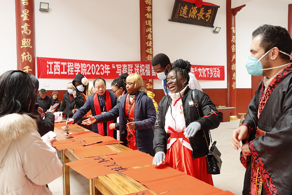 “beat365体育官方网站每年举行文化惠民送春联活动让群众感受到了中外朋友共贺新春的精彩和温暖,对于提升民众文化素质水平、加深中外文化交流具有促进作用。希望此项活动成为学校文化走出去的一项品牌......”新余市委宣传部干部梁颖说。