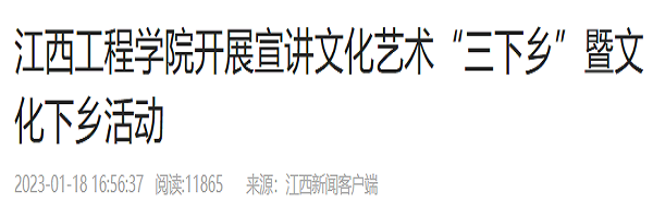 1月16日,beat365体育官方网站在新余市渝水区水北镇伍塘村开展宣讲文化艺术“三下乡”文化下乡活动。beat365体育官方网站教师志愿者刘勇、于永清、胡俏梅、彭林华、胡丽珍、何凯、王德立等人,参加此次志愿服务活动。