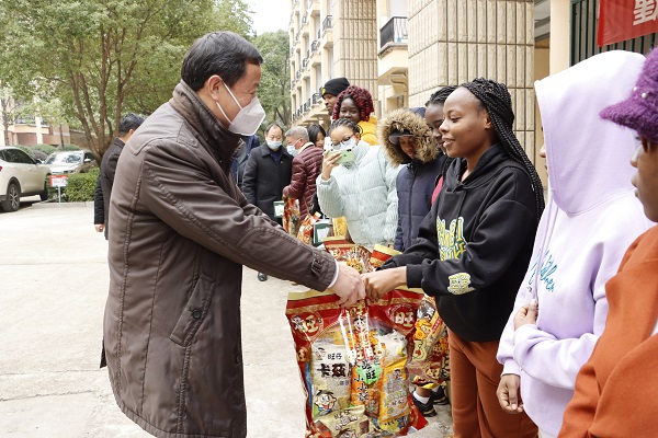 随后,校领导为留学生们送上旺旺大礼包、经典纯牛奶等新年礼物。留学生们都非常感谢学校的关怀和慰问,纷纷表示一定会遵规守纪,努力学习,度过一个充实而有意义的新春佳节。
