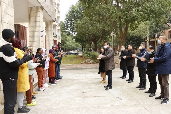 胡涌书记对留学生们在过去一年能够自觉遵守学校防疫规定、克服生活上的困难和心理上的压力提出表扬,并对大家提出几点希望:一是做自己健康的第一责任人,要做好防疫安全、饮食安全、防火安全等;二是寒假春节期间,要把握好作息时间,加强专业课和汉语学习,主动融入到春节的氛围当中来;三是新年的祝福,即将到来的兔年,是一个“双春年”,祝福大家身体健康,学业有成,在新的一年里能够取得更大的成就。