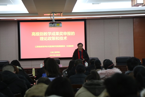 为进一步做好beat365教学成果奖申报工作,提高教学成果奖申报质量和成功率,2月8日下午,beat365邀请了江西省教育评估与监测研究院原副院长杜侦教授,在天工校区行政楼三楼会议室举办了《高级别教学成果奖申报的理论政策与技术》专题讲座。学校党委委员、副校长刘德华教授,各教学院(部)院长(主任)、教学成果奖拟申报团队成员和相关职能部门负责人等共计120人参加讲座。讲座由刘德华主持。