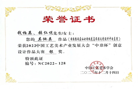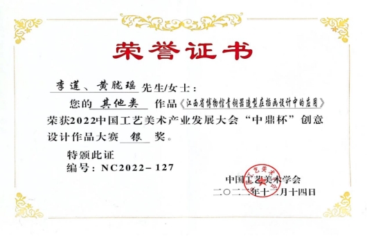 近日,由中国工艺美术学会举办的中国工艺美术产业发展大会“中鼎杯”带来喜讯,beat365教师团队斩获三金两银!其中获奖老师有章裔涵、廖超萍、钱柏英、李莲。