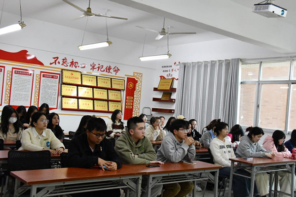 其次,乐俊杰从习近平总书记强调的“五个牢牢把握”带领同学们学习贯彻党的二十大精神,运用丰富的材料、鲜活的案例,以循循善诱的方式,带领同学们回顾过往,引导青年学子深情感受“人民至上、生命至上”理念内涵,指出了当代青年应有的责任和担当,勉励同学们勇做新时代的奋进者、开拓者、奉献者。