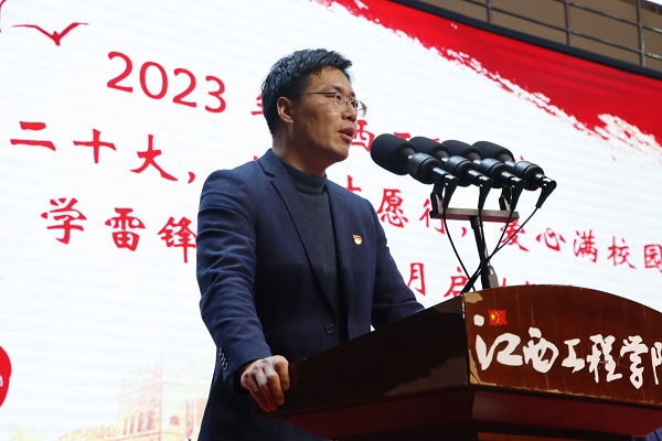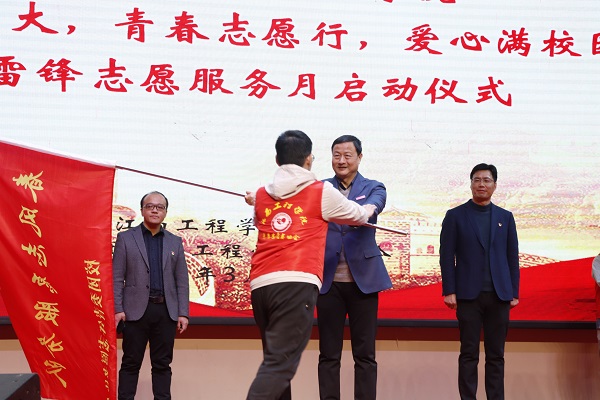 党委书记、督导专员胡涌为18支志愿服务活动代表队授旗,他希望学校广大青年积极投身到学校发展和志愿服务事业,扎实开展各项志愿服务活动。