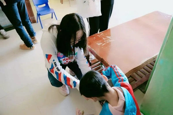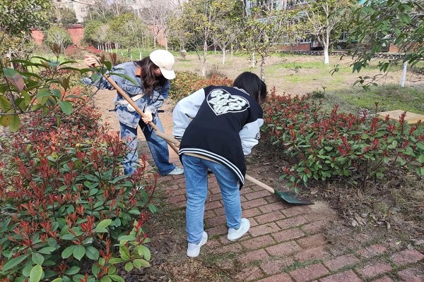 随后,大家拿起了扫把、铁锹等工具,帮助福利院清扫落叶和垃圾。