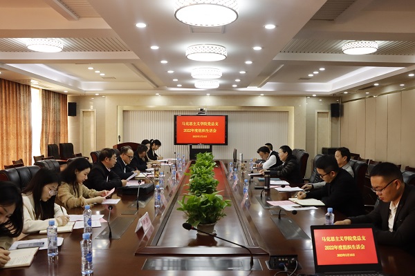 为深入学习贯彻党的二十大精神,坚持不懈用习近平新时代中国特色社会主义思想凝心铸魂,根据学校党委关于召开2022年度基层党组织组织生活会和开展民主评议党员的通知要求,马克思主义学院党总支于3月16日下午在行政楼七楼会议室召开了组织生活会。党委书记、督导专员胡涌,党委专职副书记、纪委书记黄志良,党委办公室、党委组织部负责人到会指导,马克思主义学院党总支班子成员、党员及群众代表参加会议。会议由马克思主义学院党总支书记聂火云主持。