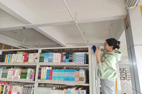 拂去灰尘换新颜,徜徉书海沐书香。为了给师生们营造一个整洁、舒适的学习和阅读环境,数字贸易学院和外语外贸学院各组织学生志愿者开展图书馆书架整理和卫生清扫志愿活动。