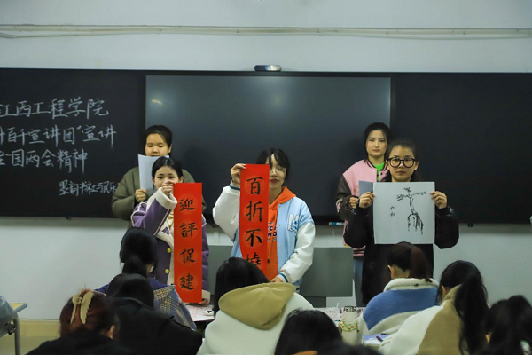 十百千宣讲团负责人符昊婧表示:宣讲团成员们为了此次宣讲,充分利用自己课余休闲时间,对全国“两会”所传达的精神和思想进行探讨和学习。书法和音乐的碰撞,触人心弦,用大家所喜闻乐见的方式让同学们更好理解和学习“两会”精神,坚定自身理想信念做新时代的好青年。