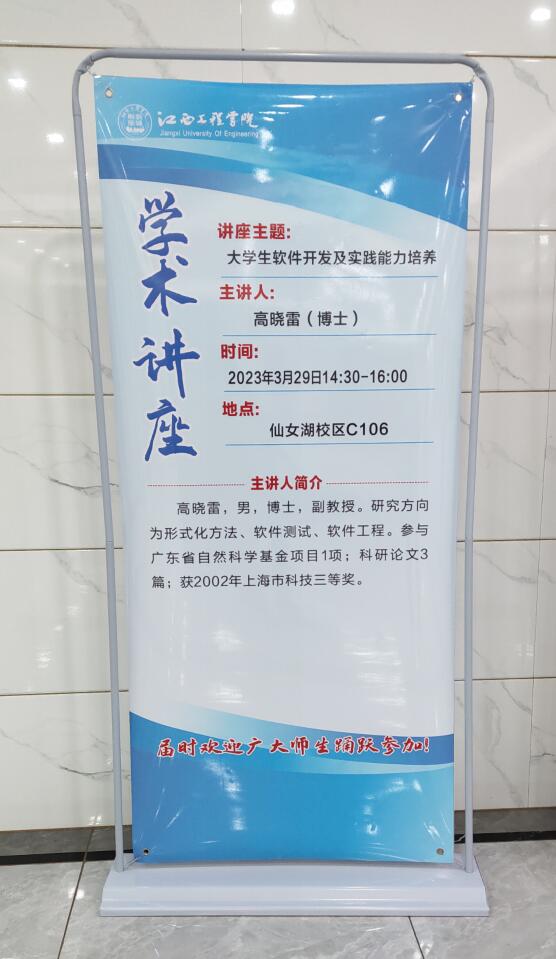 2023年3月29日下午14:30,高晓雷副教授在仙女湖校区教学楼C106学术报告厅作了题为“大学生软件开发及实践能力培养”的主题讲座。讲座由区块链学院院长万为清主持,区块链学院部分教师和一百五十余名学生聆听了此次学术讲座。