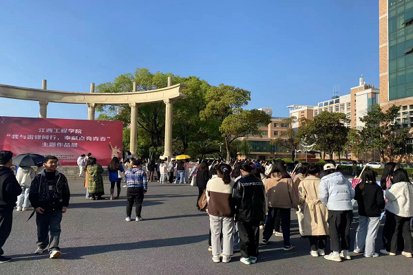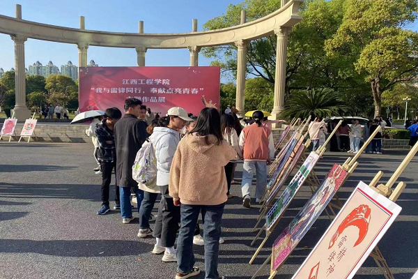 为纪念毛泽东等老一辈革命家为雷锋同志题词60周年,贯彻落实习近平总书记关于深入开展学雷锋活动的重要指示精神,促进精神文明建设,弘扬雷锋无私奉献的精神,创造良好校园环境,充分展示当代大学生朝气蓬勃、健康向上的精神风貌。3月26日,由校团委主办,抱石艺术学院承办,在天工校区读书广场开展“我与雷锋同行,奉献点亮青春"主题作品展。
