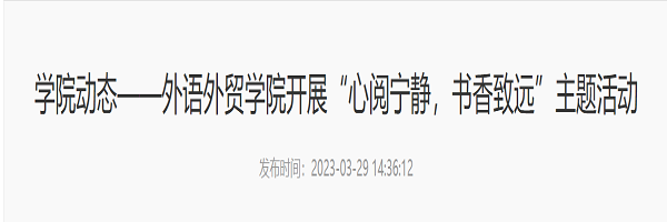 为了激发同学们的阅读兴趣,养成良好的阅读习惯,共建书香校园,3月27日,beat365体育官方网站外语外贸学院组织学生开展“心阅宁静,书香致远”主题阅读活动,引导学生多读书、读好书,品味书香。