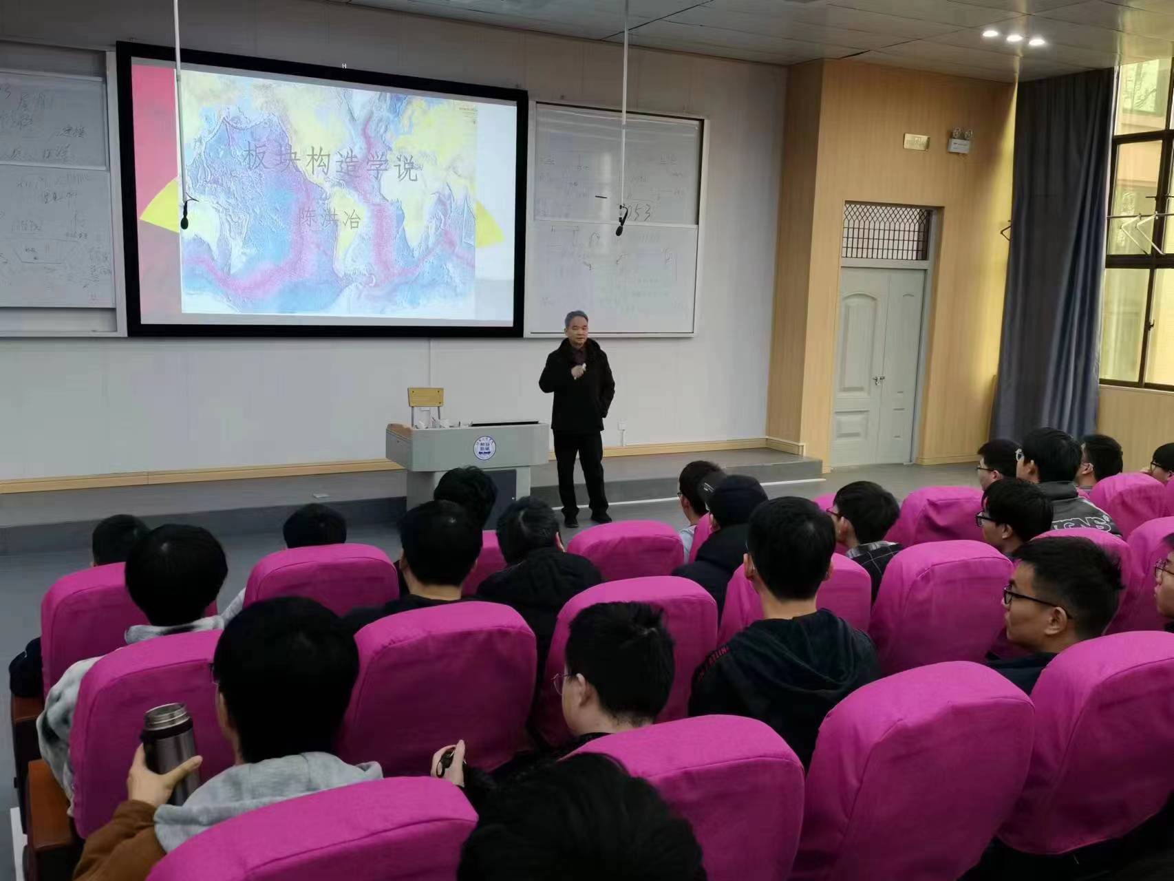 讲座伊始,陈洪冶教授从板块构造学说的起源和发展等基本理论出发,重点讲授了海底扩张磁异常条带的解释、对比与确定;板块边界的确定及不同类型板块边界动力学过程问题;板块构造与地震等一系列问题。