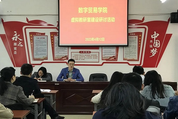 为促进教育数字化转型发展,引导教师回归教学、热爱教学、研究教学,全面提高教师教书育人能力,4月12日,数字贸易学院于B201开展虚拟教研室建设研讨活动。此次活动由副院长吴娟主持,院长谭文武以及全体教师参加。
