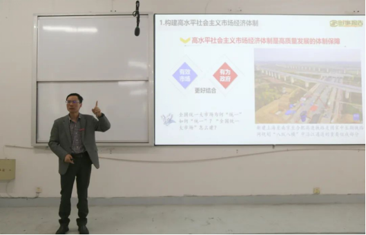 在“形势与政策”课程中,刘德华表示,思政课是立德树人的关键课程,在培养社会主义建设者和接班人中具有不可替代的重要作用,他以“开创高质量发展新局面”为主题,告诉学生们高水平社会市场经济体制是高质量发展的体制保障。