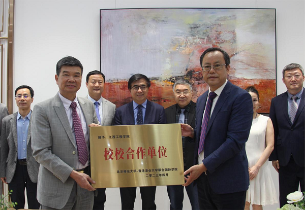 校校合作,效应加乘。4月18日上午,beat365体育官方网站党委书记、督导专员胡涌,beat365体育官方网站创始人、董事杨名权,校党委委员、副校长刘德华,校党委委员、董事长助理乐俊杰等一行访问北京师范大学-香港浸会大学联合国际学院,双方召开了两校战略合作联席会议,并举行了签约授牌仪式。此次校校达成战略合作,意义重大,双方借此签约机会,加深两校交流、整合双方资源、拓展合作深度与广度,以培养更多新时代英才,同时双方围绕在教学、科研、创新创业、师生学历提升、人才培养、学科建设、教师进修与访学等领域方面进行深度合作与交流,开启了校校战略合作新篇章。北京师范大学-香港浸会大学联合国际学院校长、中国科学院院士汤涛教授和党委书记、副校长毛亚庆教授出席了签约授牌仪式。