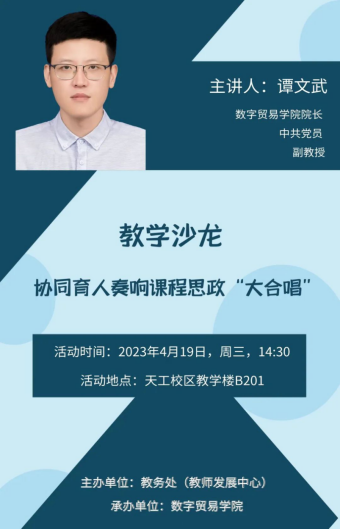 为进一步提升教师教学水平,以立德树人为根本,鼓舞教师深研教学内容、分享教学理念及教学经验,响应学校教务处提出在全校范围内创建开放性、研究性交流平台的计划,营造研究教学、投身教学的良好氛围,数字贸易学院电子商务教研室于4月19日14:30开展2022-2023学年第二学期教学沙龙活动,主题为协同育人奏响课程思政“大合唱”。