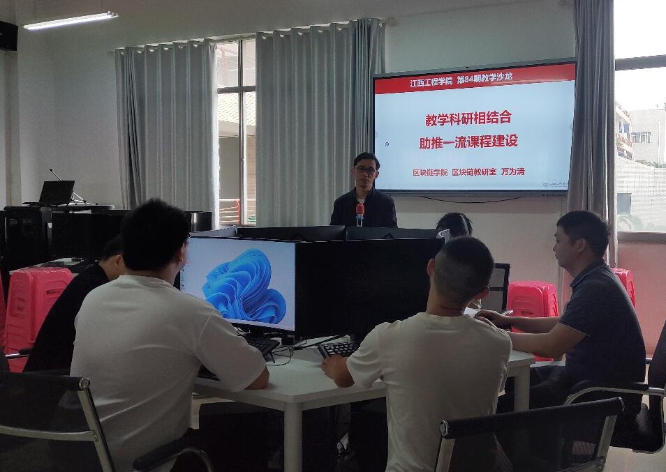 4月19日下午,由教务处教师发展中心和区块链学院共同举办的以“教学科研相结合,助推一流课程建设”为主题的教学沙龙活动在仙女湖校区实训楼A203如期开展。