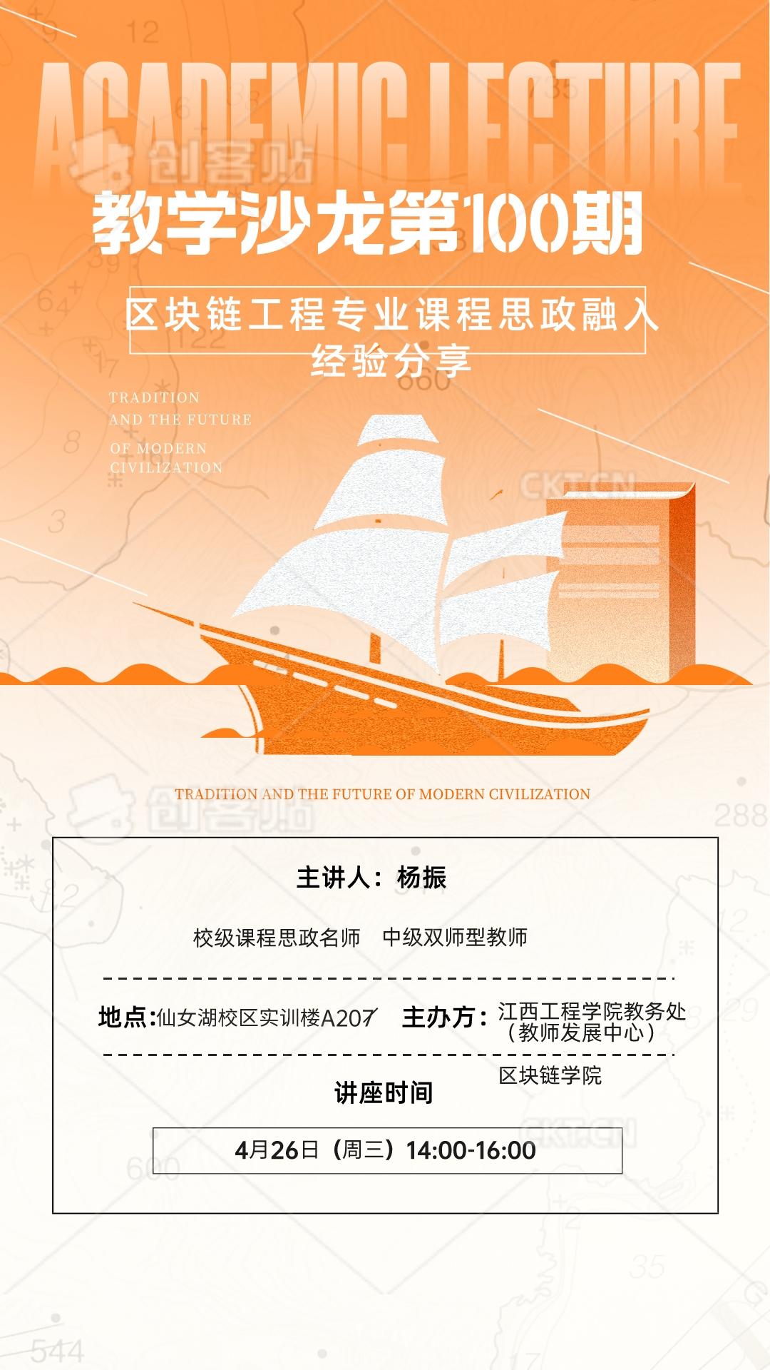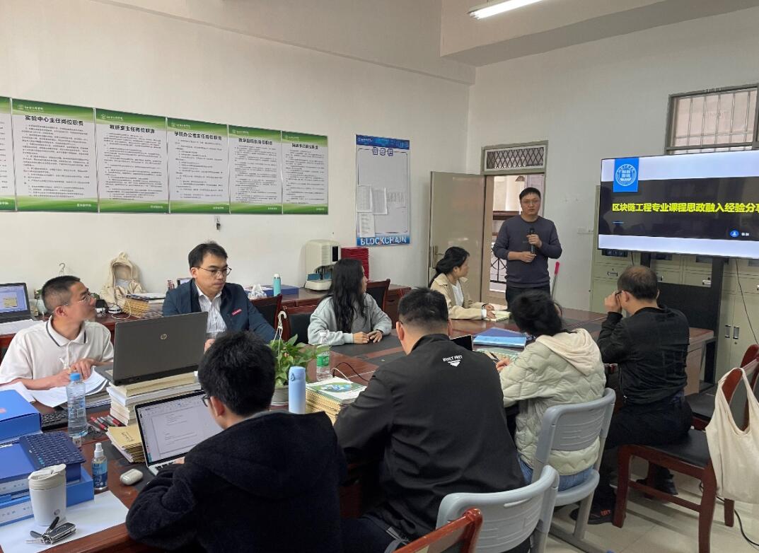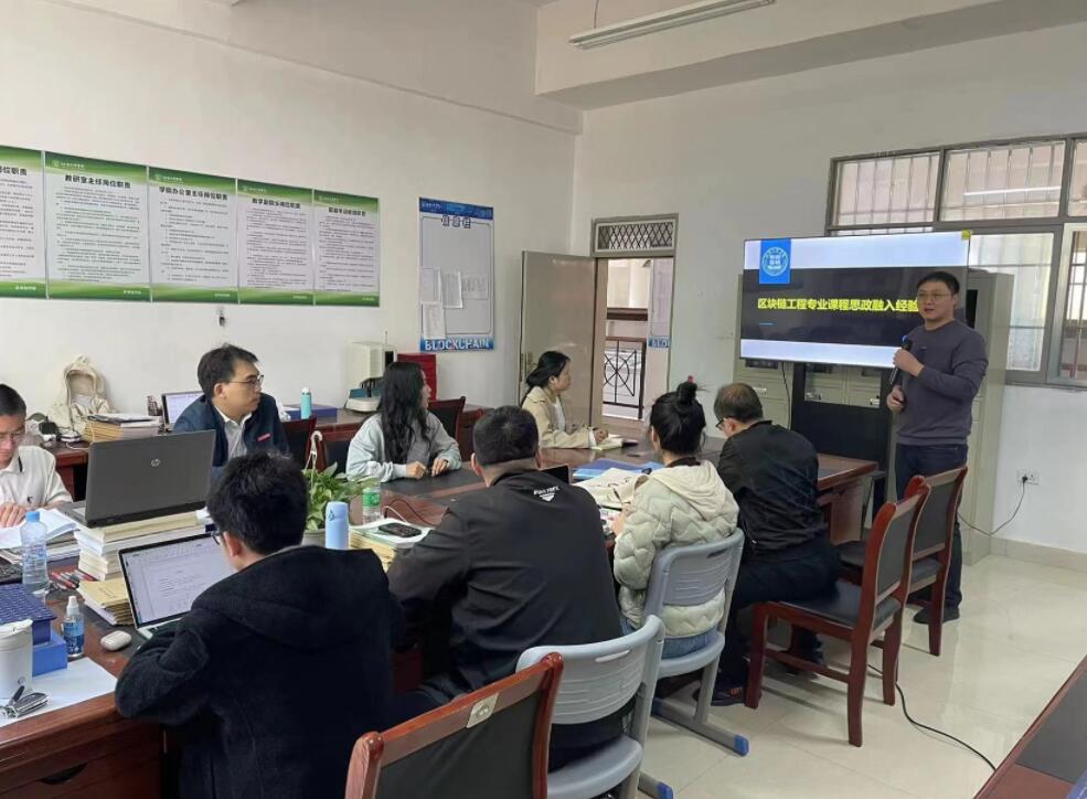 4月26日下午,由教务处教师发展中心主办,区块链学院承办的第100期教学沙龙活动在仙女湖校区实训楼C207举行。活动邀请校级课程思政名师,中级双师型教师杨振老师以“区块链工程专业课程思政融入”为主题进行经验分享,杨老师以密码学、加密数字货币等课程为例,讲述了如何从不同角度进行课程思政融入。