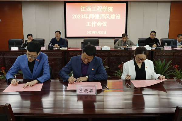 会议还举行了师德师风承诺书签订仪式,各单位负责人、党政分设的教学院党支部书记作为二级单位师德师风建设责任人,与校党委书记、督导专员胡涌签订了师德师风承诺书。
