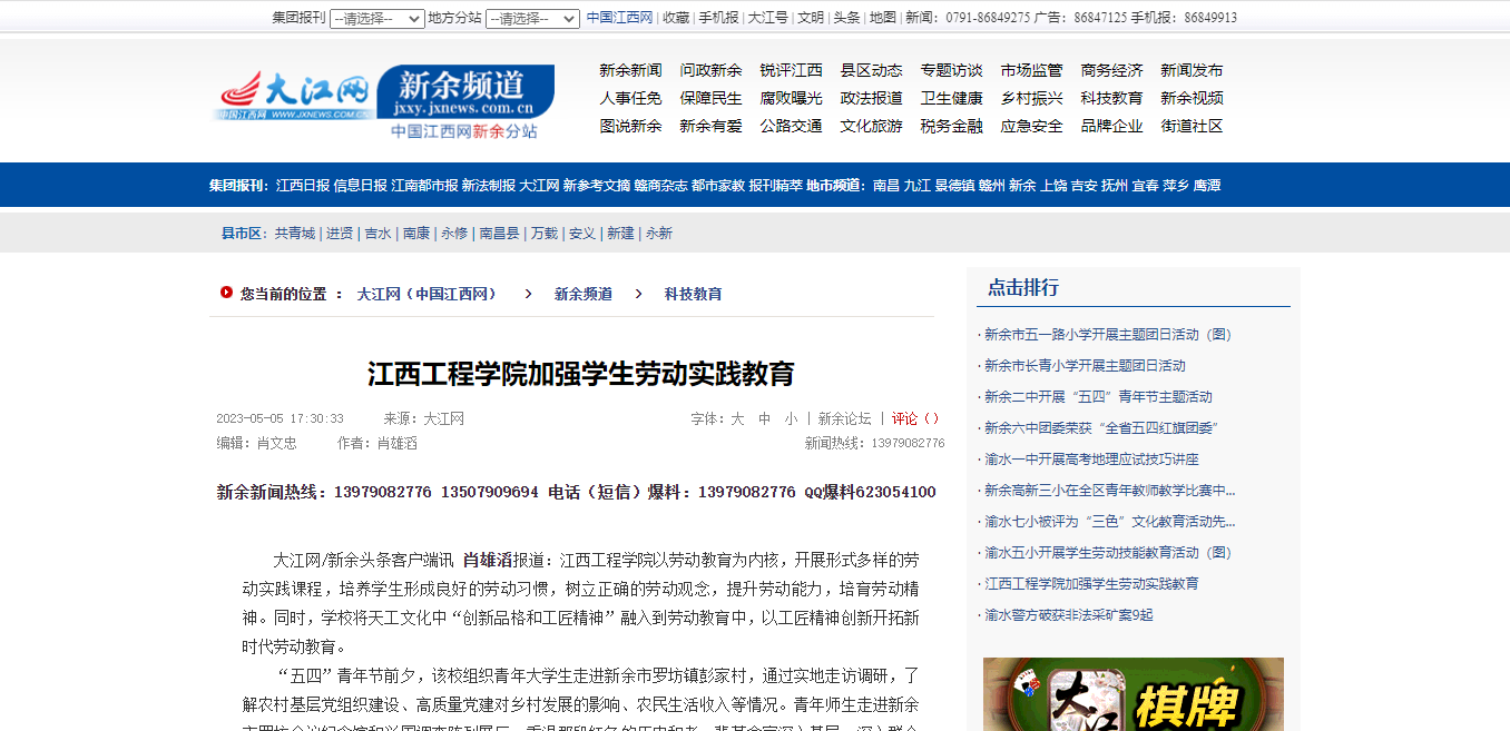 “五四”青年节前夕,该校组织青年大学生走进新余市罗坊镇彭家村,通过实地走访调研,了解农村基层党组织建设、高质量党建对乡村发展的影响、农民生活收入等情况。青年师生走进新余市罗坊会议纪念馆和兴国调查陈列展厅,重温那段红色的历史和老一辈革命家深入基层、深入群众调查研究的优良作风。