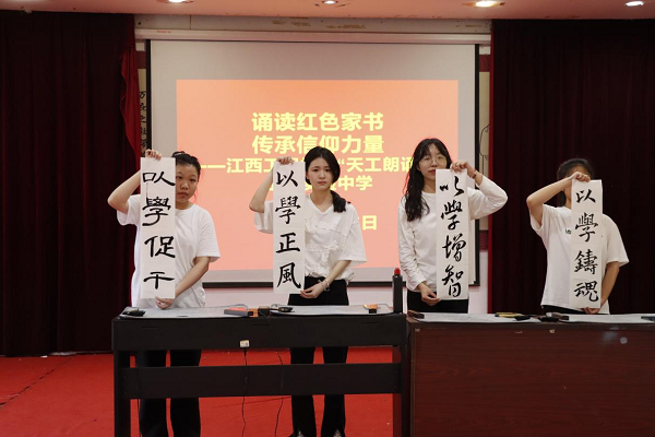 “整场演出以诵读红色家书、讲述英烈故事为主,现场配乐为依托,视频渲染为支撑,多媒体视觉形象为载体,通过书信朗诵、书法、民乐表演等多种表现形式带领观众领略一段段感人至深的故事,不同的演绎方式却是同样的触动人心,在体会革命烈士们的家国情怀、革命热情的同时,深入推进红色文化育人。”新余市实验中学党支部书记胡传芳说到。