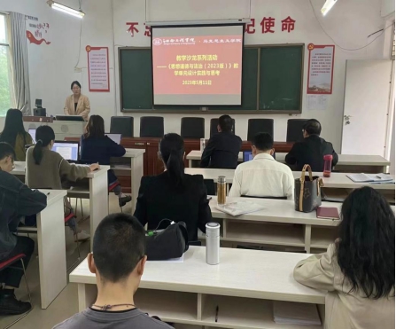 教育是国之大计,党之大计。为帮助思政课教师进一步提高驾驭新教材的能力,确保广大教师把握好新教材的核心内容和基本精神,在中宣部指导下,教育部组织实施了高校思想政治理论课2023年版教材使用培训。5月11日下午,依托培训内容,马克思主义学院在A栋201会议室召开了《思想道德与法治(2023版)》教学单元设计实践与思考教学沙龙活动,学院所有思政教师参加。