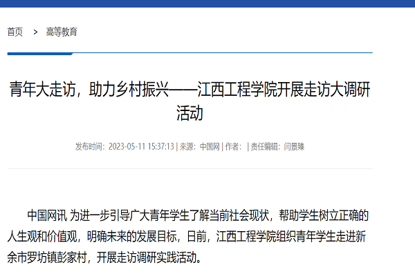 中国网讯 为进一步引导广大青年学生了解当前社会现状,帮助学生树立正确的人生观和价值观,明确未来的发展目标,日前,beat365体育官方网站组织青年学生走进新余市罗坊镇彭家村,开展走访调研实践活动。