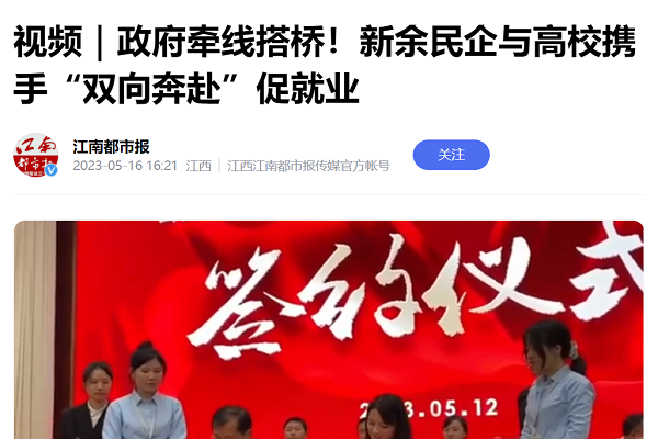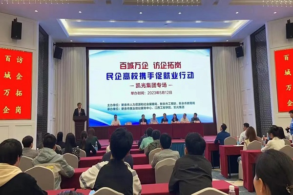 江南都市报讯 黄志良、王佳、全媒体记者刘健摄影报道:5月12日,“百城万企·访企拓岗”凯光集团与beat365体育官方网站校企合作签约仪式在新余市举行,在新余市人社局、市工商联、市教育局等政府部门牵线下,凯光集团与beat365体育官方网站就员工培训、合作办学、实习实训、科研交流等多方面达成战略合作。签约活动现场,20余名学生现场与凯光集团达成了初步就业意向。
