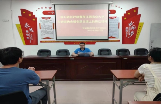 5月25日晚,电子信息工程学院在201会议室召开学习省长叶建春同志在江西农业大学形势报告会暨专题党课上的讲话精神研讨会,邹小金院长指出要深刻领会党课报告的深刻内涵,更加增强红土圣地的政治忠诚,更加增强开展主题教育的思想自觉,不负青春韶华,做有理想、敢担当、能吃苦、肯奋斗的新时代好青年。学院团总支书记许江表示:“省长叶建春同志在讲话中娓娓道来,深刻阐述了新时代中国的伟大变革和新时达江西取得的重大成就,让我感到深深自豪。十年来,我有幸亲眼见证了江西的飞速发展,作为一名基层团总支书记,我将以叶省长的报告精神为指引,不忘“立德树人”初心,牢记“为党育人、为国育才”使命,努力培养好堪当民族复兴大任的时代新人,为加快建设现代化江西而贡献力量。”