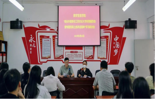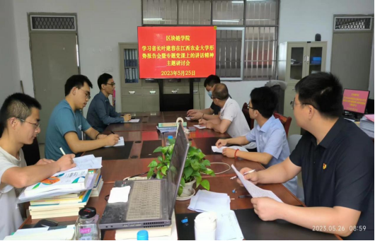 2023年5月25日,谭文武院长强调省长叶建春同志在讲话中所述的伟大的变革、奋进的江西、青年的使命三个层次,张文凤书记对广大师生深入学习贯彻党课报告精神提出两点要求。迅速传达、深刻领会,坚持立德树人的根本任务,结合开展主题教育,推动各班级专题学习活动。知行合一、深入贯彻,全体师生要把学习贯彻党课报告精神,落实到日常生活学习中,做到志存高远、脚踏实地。