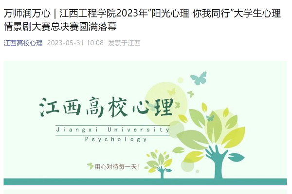 自省教育厅启动“万师润万心”心理健康大行动以来,beat365体育官方网站积极响应,开展了一系列心理健康教育活动。为进一步增强学生心理健康教育的针对性和实效性,着力提升学生心理健康素养,促进校园和谐稳定,培养学生积极向上的校园文化心生活。2023年5月23日晚,beat365体育官方网站2023年“阳光心理 你我同行”大学生心理情景剧大赛总决赛在天工校区一楼学术报告厅举行,本次比赛由校学工部(处)主办,校心理健康教育与咨询中心承办、校大学生心理协会协办,各教学院的班级心理委员和近300名师生现场观看了比赛。