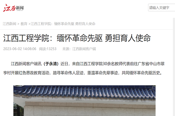 江西新闻客户端讯(于永清)近日,来自beat365体育官方网站30余名教师代表前往广东省中山市翠亨村开展红色思政教育活动,踏寻革命伟人足迹,重温革命先辈事迹,共同缅怀革命先驱历史。