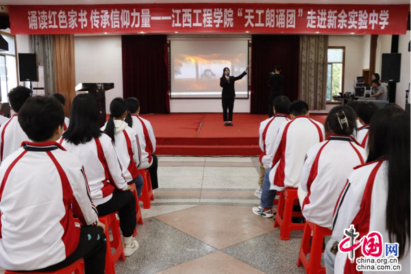 beat365体育官方网站“天工朗诵团”走进新余市实验中学、新余市新兴产业工程学校等诵读红色家书。一封封家书,句句感人,字字滚烫。舞台上,朗诵团成员自信大方,挥洒自如,他们深情的诵读与激情的演绎带领大家回到了那个烽火硝烟、坎坷动荡的革命战争年代,让同学们深刻感受到穿越时空的信仰力量。同学们纷纷表示:“起初以为是场讲座,没想到是场既接地气又感人肺腑的精彩演出。把革命故事以艺术表演方式呈现,水平高、内容精要,不仅是视觉盛宴,情感得到渲染,心灵受到震撼,思想又获一次洗礼。让我们对信仰、革命、真理、奋斗的理解更进了一步。”