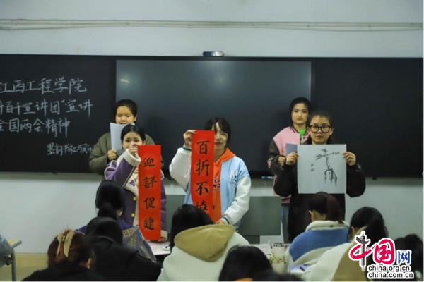 宣讲团成员把握正确导向,用朗诵、话剧、乐器演奏等形式宣讲全国两会精神,帮助学生了解什么是“两会”、“两会”的内容有哪些以及党和政府对2023年工作的部署,引领学生坚定理想信念、树牢家国情怀、勇担青春使命,在强国建设、民族复兴征程上绽放绚丽的青春之花。
