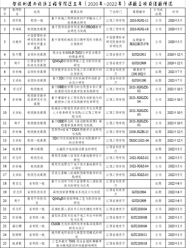 1.自2020年以来,学院教师共主持或参与省级课题9项、校级课题16项。