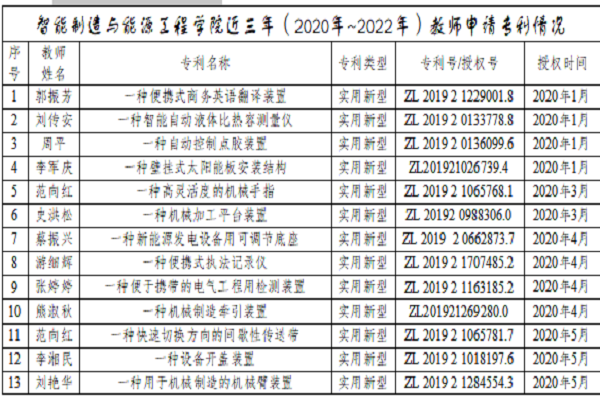 4.自2020年以来,学院教师共申请实用新型专利84项,软件著作专利1项。