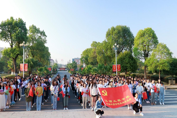 学院坚持“党建+”理念,聚焦大学生品德、思维、认知、行为等发展规律,以培养学生成长思维模式、提升学生全面发展为目标,创建了“党建+跨文化育人”的独特品牌,积极探索思想政治教育新模式,充分发挥教师党员主导和课堂教学主渠道作用,将红色基因传承、党建主题融入课堂中,融入就业指导、毕业设计(论文)创作中,做到润物无声,有情育人。