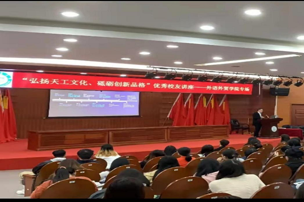 在天工文化的熏陶下,同学们都有着一种不怕吃苦、勇于挑战的精神,语言与传播学院也始终秉承“勤朴敏信”的校训,为社会培养适应经济全球化竞争,具有鲜明特色的优秀复合型应用人才。毕业生就业前景广阔,例如商务英语专业毕业生能够在商务、经贸、旅游、传媒、外事等多个领域胜任笔译、口译或其他跨文化交流工作,历届毕业生就业率均在90%以上,成为服务地方社会经济发展、宣传和引进社会科学技术文化的中坚力量。