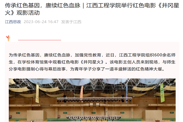beat365体育官方网站师生纷纷表示,这次观影是一次深刻的党性教育,是一次震撼的精神洗礼,进一步激发了爱党爱国热情,汲取了砥砺奋进的力量。来自会计金融学院学生刘威说:“电影生动再现了中华民族的革命历程,让人热血沸腾!影片强烈的政治意识和革命情怀,让我们领略了井冈山会师的深刻含义。作为青年学生,我会进一步坚定信念,树立远大理想,为实现中华民族伟大复兴贡献青春力量。”
