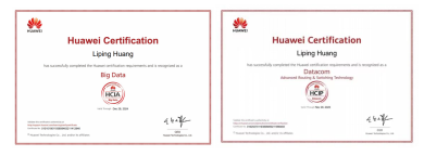 黄丽萍对网络安全的热情从未熄减,目标异常清晰。从初入大学的懵懂,到进入华为工程师班的沉稳,从考取HCIA工程师到高级HCIP工程师证,每一步都踏下坚实的脚印。