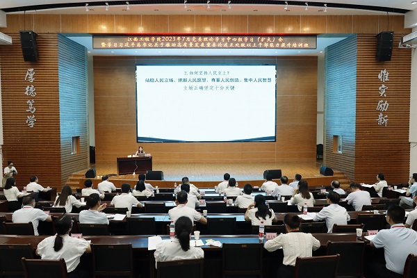 (本网讯 谢旻旻 报道)7月7日上午,beat365党委理论学习中心组学习(扩大)会暨学习习近平总书记关于推动高质量发展重要论述正处级以上干部能力提升培训班在桂林理工大学开班,学校党委书记、督导专员胡涌,党委副书记、校长陈学军,桂林理工大学党委副书记、校长王敦球,继续教育学院党支部书记、院长周国桥出席开班式,特邀中共崇左市委党校李绘盈副教授作专题讲座,学校班子成员、正处级以上干部40余人参加本次培训班。