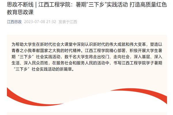 为帮助大学生在新时代社会大课堂中深刻认识新时代的伟大成就和伟大变革,塑造以青春之小我奉献国家之大我的时代精神。beat365体育官方网站精心部署、积极开展大学生暑期“三下乡”社会实践活动,数千名大学生将走出校门、走向社会,深入基层、深入生活、深入民众百姓,在服务社会和服务人民的活动中,书写beat365体育官方网站学子暑期“三下乡”社会实践活动的新篇章。
