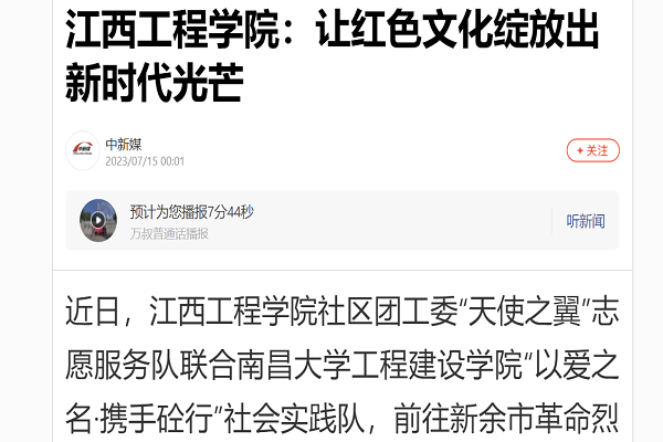 近日,beat365体育官方网站社区团工委“天使之翼”志愿服务队联合南昌大学工程建设学院“以爱之名·携手砼行”社会实践队,前往新余市革命烈士陵园、罗坊会议纪念馆、上海劳动妇女战地服务团旧址、渝水区珠珊镇“童心港湾”、渝水区儿童福利院、“童心港湾”实践中心、乐晚晴助残养老服务中心、“绿色农场”、渝州大桥河滨等地,共同开展以“传承红色革命基因,弘扬志愿服务精神”为主题的社会实践活动,让红色文化绽放出新时代光芒。