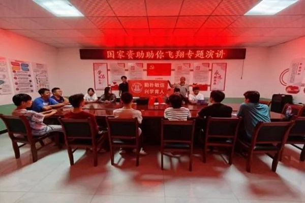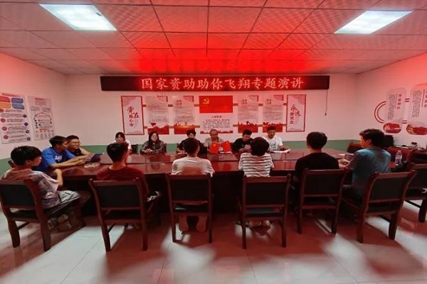 宣传成员在当地村村委会开展资助政策宣讲