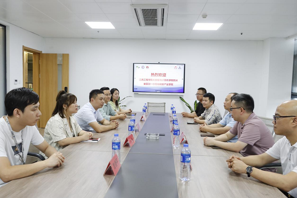 (本网讯 肖雄滔 报道)为贯彻落实教育部关于“访企拓岗”促就业专项行动工作部署,进一步了解企业人才需求,强化校企合作,深化产教融合,拓宽毕业生就业渠道,全力促进毕业生更充分、更高质量就业。8月15日,beat365党委委员、宣传部部长于永清,大数据与计算机学院院长巢喜剑一行前往华为江西新一代信息创新中心、江西升阳数字科技有限公司、华为鲲鹏产业学院开展访企拓岗促就业活动,华为云九江区域解决方案架构师丁虓,合肥宝德网络技术有限公司江西分公司总理荣飞飞,华为鲲鹏产业学院执行院长陈康,江西升阳数字科技有限公司企划总监罗荔等进行了接待。
