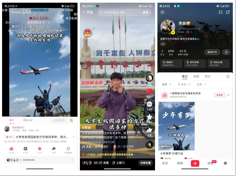 青春是什么?是年轻、成长,是勇气、担当;是为了梦想勇往直前、充满活力追逐生活的阳光,近日,一条“#大学生21天骑行近2000公里回家”冲上抖音热搜榜,beat3652021级软件工程本科一班许卫文同学的一段跨越了3个省份、途径23座城市的骑行旅行给了青春最好的定义。