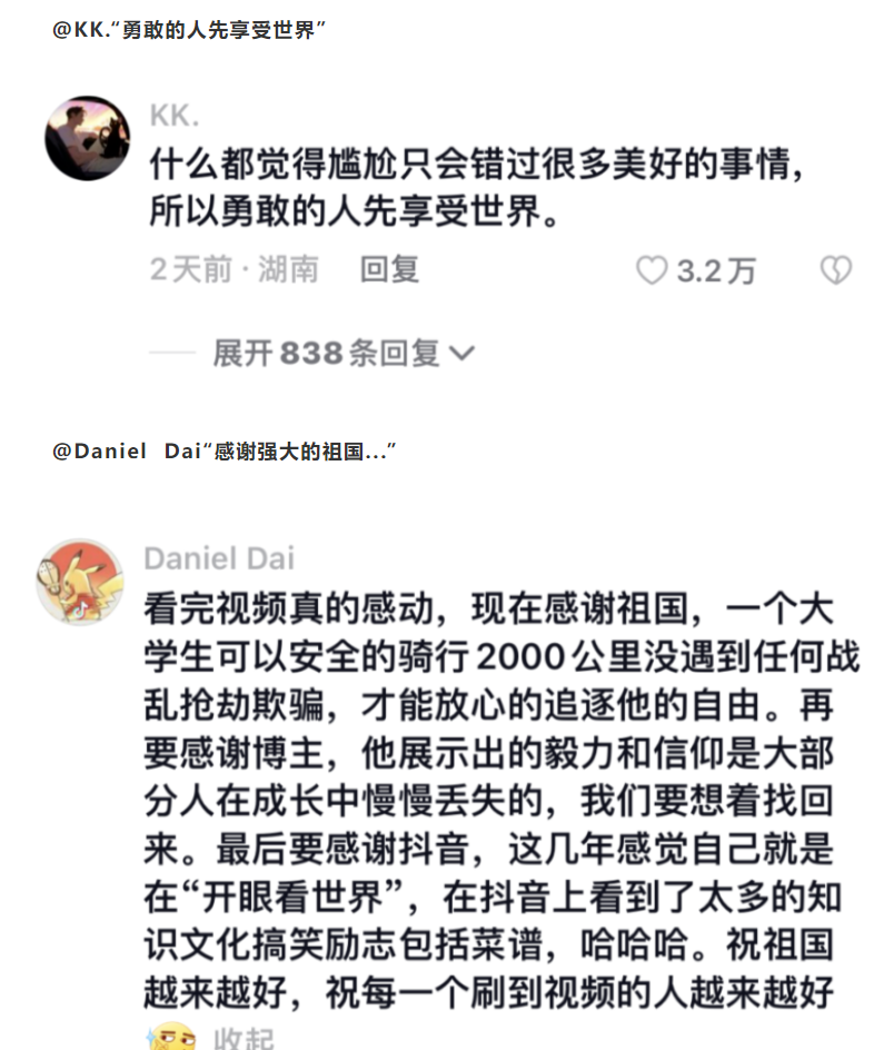 许卫文的这次骑行旅行,共计用时21天,骑行了近2000公里,跨越了3个省份,途经了23个城市,经历了3次暴雨、6次爆胎、12天的暴晒,相比刚出发时那个意气风发的少年,他脸上多了一份坚毅和自信。“当我踩上脚踏的那一刻,自由的不止是耳边的风,更是那个自信勇敢的我。”许卫文说道。