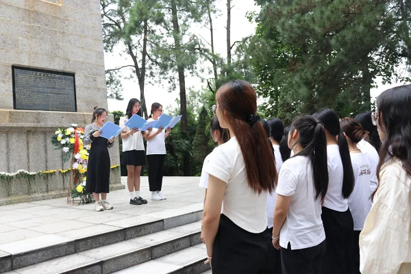 一封家书,一个故事;一份聆听,一种传承。献花结束后,学生代表在碑前诵读红色家书。这些红色家书,是血泪史,是绝笔信,讲述了革命先辈们一个个感人肺腑的革命故事,谱写了一首首忠诚的战歌。