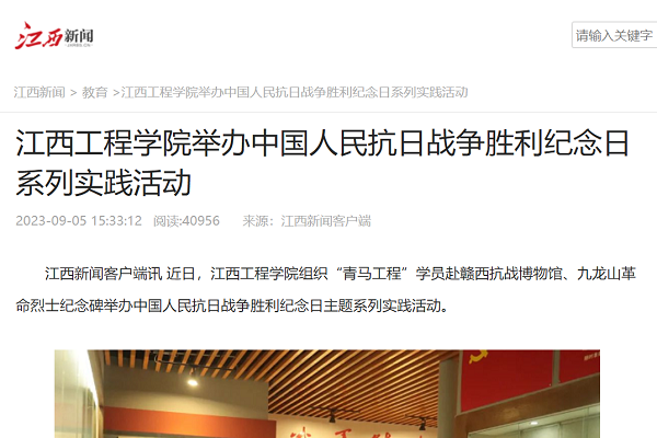 在赣西抗战博物馆,青年学子们详细了解了赣西抗战博物馆:国土沦丧抗战在新余、人民动员抗战在新余、上海劳动妇女战地服务团在新余、赣西抗战丰碑四个展区的峥嵘岁月。一张张照片,一件件文物无不向我们展示先烈们舍生忘死、百折不挠的坚毅品格。学子们纷纷表示,要继承和发扬革命先烈的光荣传统,学好专业知识,练就过硬技能,以奋发有为的精神、敢拼敢闯的勇气、开拓进取的干劲,坚定不移推动高质量发展。